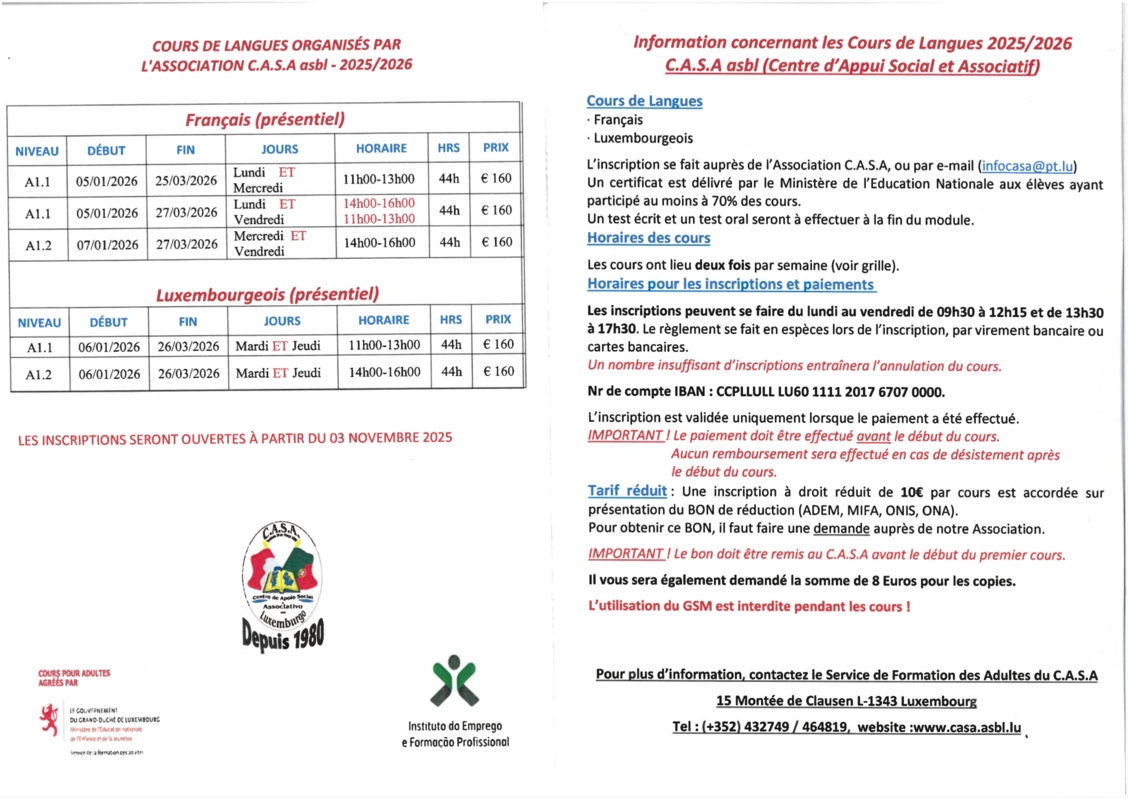 Informamos que a partir do dia 3 de novembro, abrem as inscrições para os cursos de Francês e Luxemburguês!